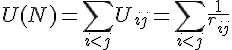 On sait donc par la Loi de Coulomb, que l'énergie potentielle d'interaction électrostatique entre deux charges i et j est donnée par(où on a posé que la constante de coulomb k=1, et