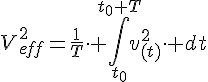 De façon générale, la valeur efficace d'une tension périodique est sa valeur quadratique moyenne. Cela veut dire que le carré de la valeur efficace est égale à la moyenne sur une période du carré de la valeur instantanée.