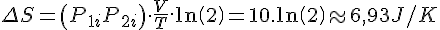 La variation d'entropie due à ce retrait est alors donnée par la détente libre des deux gaz dans le volume totale de 20 L, à température toujours constante.