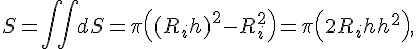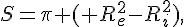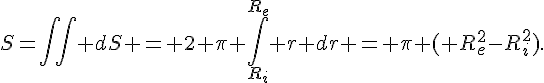 L'aire d'une couronne, de diamètre intérieur R_i et de diamètre extérieur R_e. Pour calculer son aire, on intègre 2 \pi r dr de R_i à R_e, ce qui permet d'obtenir