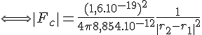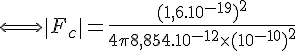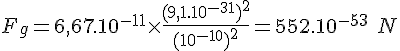 Excusez-moi, j'ai fait une erreur, l'ordre de grandeur de la force électrique est 2x10-8 Newtons :