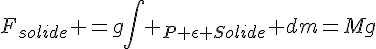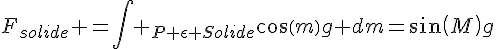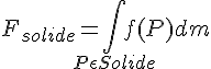 Considérons un solide rigide dans un référentiel galiléen. Chaque élément de masse dm du solide situé au point P subit une force massique f. La force totale subie par le solide est :