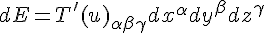 Maintenant, en partant du tenseur masse-énergie,. Dans un repère de qv temps u, uTu est la densité volumique d'énergie dans ce référentiel. On peut l'interpréter comme un tenseur totalement antisymétrique qui à trois qv spatiaux, perpendiculaires à u, associe la quantité d'énergie comprise dans le volume défini par ces trois qv. Soit