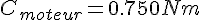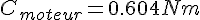 - Moments d'inertie équivalent ramené sur l'arbre moteur Jeq = 4.87 * 10^{-4}