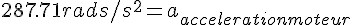- accélération linéaire du chariot+charge (montée ou descente) = 0.5 m/s²