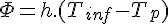 où phi est le flux de chaleur à la paroi, h est le coefficient d'échange thermique