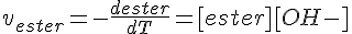 Donc l'étape limitante provient du choc entre une molécule d'ester et un ion hydroxyde. Si on double l'un de ces réactifs, la vitesse de la réaction est doublée également. On a donc affaire à une équation dont la vitesse est d'ordre 1 par rapport à chacun des deux réactifs, et d'ordre 2 en tout.