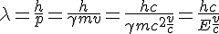 (de Broglie), avec p la quantité de mouvement et lambda la longueur d'onde,