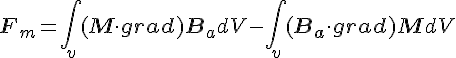 Je cherche (p436, Perez, EM) à obtenir l'expression de la force résultant de l'aimantation d'un matériaux. L'objectif est de montrer que :