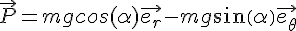 En projetant dans la base polaireon obtient les composantes des forces (poids et réaction) :