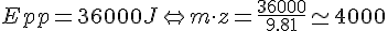 En calculant l'équation de la vitesse en fonction de l'altitude avec la 2nde loi de Newton et en appliquanton aboutit au même résultat en retrouvant l'expression de Epp ... En utilisant la capacité des batteries de 3000 mAh on a la même chose.