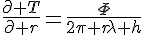 , avec h la hauteur du barreau, phi le flux (constant car en régime stationnaire), lambda la conductivité thermique et l'abscisse du rayon (en coordonnées cylindriques)