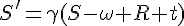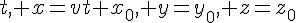 Creusons un peu plus. Partons d'un système de coordonnées de Lorentz t,x,y,z. La ligne d'univers d'un objet se mouvant à vitesse constante v suivant l'axe des x sera décrite par. Effectuons une transformation de Lorentz vers le système de coordonnées où cet objet est immobile, t',x',y',z' :
