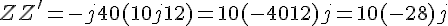Z2 = (−j40)//(10 + j12) = 21∠(30.5