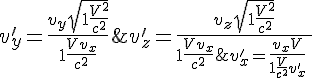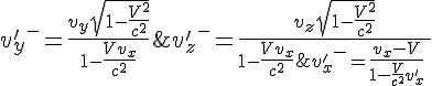 un vecteur quelconque de composante t x y z dans le repere d'origine est transformé en un vecteur de composantes t' x' y' z' données par les formules de Lorentz