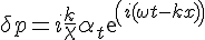 Il faut repartir du début : conservation de la matière , qui linéarisé et à une dimension donne puis introduire la compressibilité qui donne puis passer en complexe et enfin de passer de la vitesse à la position