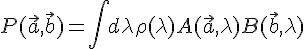 Bon alors j'ai fait le calcul, en remplacant b par c on obtient : 0 >= 0. Donc à mon avis l'idée de l'auteur était de remplacer b seulement à gauche de l'équation, et la première remarque signifiait que la valeur absolue n'était pas nulle. Bref, c'est du grand n'importe quoi.Thus P(b, c) cannot be stationary at the minimum value (-1 at b = c) and cannot equal the quantum mechanical value (3).