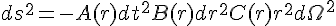 Le métrique étant dépendante du choix de coordonnées, on utilise cette liberté pour faire le changementpour éliminer le C(r) devant le troisième terme de l'équation.