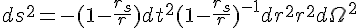 On considère le cas le plus simple possible de trou noir, le trou noir de Schwarzschild, dont la métrique est exprimée dans les coordonnées éponymes :