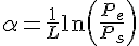 alpha= [-ln(10).log(Ps/Pe)]/L