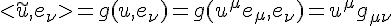 Le rôle de la métrique peut être considéré comme celui de "descendre" l'indice. Lessont les coordonnées contravariantes du vecteur u, alors que les