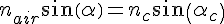 Démontrer que l’angle α est donné par la formule : Sin α = Sqrt(nc2 − ng2)