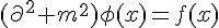 Un autre exercice est de coupler pendant un intervalle de temps T le champ quantique de Klein-Gordon avec un champ scalaire classique f(t) (nul en dehors de l'intervalle T et présentant des variations dans cet intervalle). L'équation du champ est. Le calcul à faire est la moyenne du hamiltonien dans l'état |0> de vide avant et après l'apparition de la source f. La surprise est qu'on obtient un résultat non nul qui dépend d'une composante de Fourier de f, dont la fréquence correspond à l'énergie de masse des particules de KG. En fait on crée des particules avec ce champ f. Le but est de montrer que l'état de vide du champ de KG libre n'est pas le même que celui du champ en interaction.