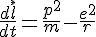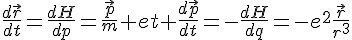 Exemple issu d'un livre de A.MESSIAH : Soit un e- dans le champ coulombien d'un proton. r(x,y,z) sa position, v=dr/dt sa vitesse et p(px,py,pz) son impulsion.