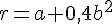r= a + 0,4b2 a = (0,1 +/- 0,2) et b = (5,7 +/- 0,2) en remplaçant les valeurs connues dans l'équation je trouve r= 13,096.