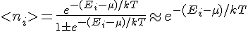 Pourtant, si on considère la formule des Ni=gi/(exp((E-µ)/kT)+-1) il faudrait plutôt que T soit faible pour tendre vers Ni=A.gi.exp(-E/kT).
