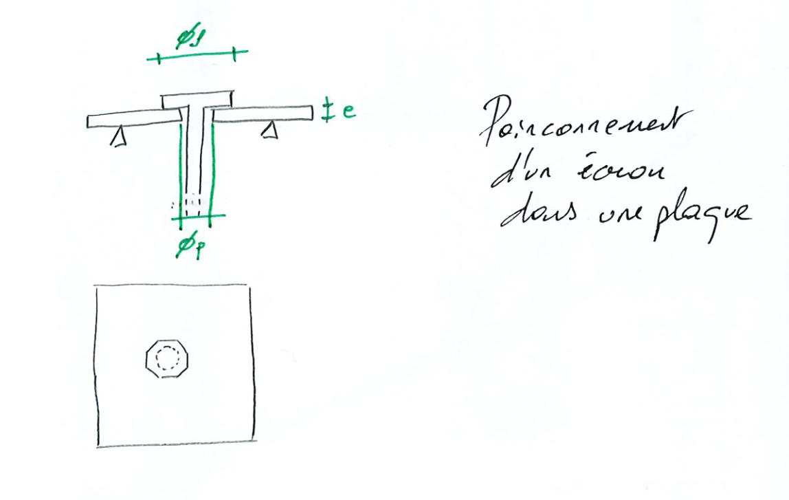 Je cherche comment déterminer la force à appliquer par l'écrou sur la plaque pour que l'écrou poinçonne dans la plaque.