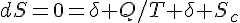 Avec i pour interne, e pour externe et u pour l'univers. Cela signifie que si l'entropie de l'univers doit croitre, cela n'interdit pas que localement l'entropie diminue pour peu qu'il y ait création d'entropie strictement supérieure à la perte.