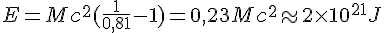 L'aller-retour dans ces conditions (fictives) se fera tout de même en 9,6/0,66 = 14,5 ans mesurées sur terre (sans compter le temps passé sur place), contre 7 dans le vaisseau. Je dis conditions fictives car on n'a pas l'énergie pour propulser un vaisseau de masse M=100000 kg (minimum pour assurer la survie de quelques passagers à mon avis) à cette vitesse: