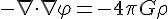 Je cherche une démonstration COMPLETE du théorème de Gauss gravitationnel : à savoir, comment démontrer l'équation de Poisson : ∆ φ ₌ 4 π G ρ où φ est la fonction telle que : G = -grad(φ) (oui je n'ai pas mis les flèches des vecteurs car j'ai perdu l'habitude de latex..). Je sais que c'est basé sur de la fonction de Green, de la fonction delta de Dirac etc, mais j'aimerais une démonstration bien formellement justifiée.