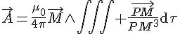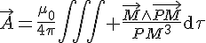 Pour l'autre, le vecteur noté J n'est PAS le vecteur densité de courant mais un champ électrique (fictif). Elle me pose souci en ceci que je ne parviens pas en triturant la formule du potentiel-vecteur "approximée" en champ lointain (de la spire) et les équations de Maxwell à retrouver une telle formule (valable UNIQUEMENT pour un vecteur aimantation M constant).