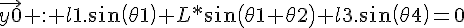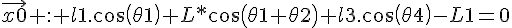 Fermeture géométrique : J'obtiens une équation intéressante qui lie Theta1 à Theta4 : l1²+l3²=2*L1*l3+2L1*l1*cos(The ta4)+2*L1*l1*cos(Theta1)+2*l1* l3*cos(Theta1+Theta4).
