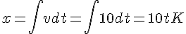 Donc en intégrant cette équation, on trouve x(t) =(5/2)t2 – 10t+x0 (avec x0=x(0)=0)