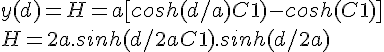 - y(d) = H = a.cosh(d/a + C1) + C2 => H = a.cosh(d/a + C1) - a.cosh(C1)
