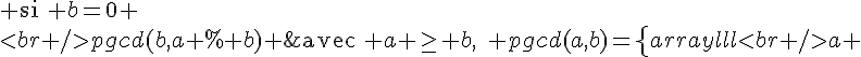 Soit a et b, deux entiers positifs. On construit euclide (n) telle que: