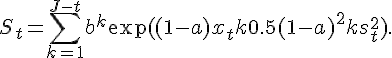 (e.^k)*J(i-k) pour k allant de 1 à i-1, e étant un nombre prédéfini dans Matlab et J étant une matrice (M+N-1,1) dont les termes sont prédéfinis.