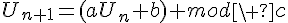 avec mod la fonction modulo. Sous réserve que les nombres a,b et c soient bien choisit on obtient une suite pseudo-aléatoire assez correcte.