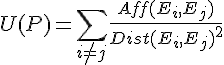 J'ai choisi U(P) de manière arbitraire, en souhaitant qu'elle vérifie une propriété : quand deux élèves qui s'aiment se rapprochent, U(P) augmente, quand deux élèves qui se détestent s'éloignent, U(P) augmente (car du coup deux élèves qui ne se détestent pas seront plus proches, donc globalement U(P) va augmenter).