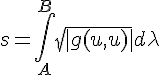) entre un événement A et un événement B, dont les vecteurs unitaires tangents (4-vitesse) s'écrivent