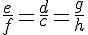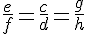 . Moi j'utilise la figure envoyée par marcossamo, dans laquelle il est évident que g=e/f, que h=d/c, que f/(e+f) n'est certainement pas égal à 1/g, et que pour e nul, g est naturellement nul lui aussi.