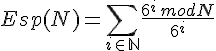 Prenons N=19, l'espérance se calcule comme une série de la forme: