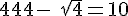 est une mauvaise réponse même si nous avons 4 chiffres de 4 et 4 opérations, mais nous avons utilisé une opération - et sqrt pas seulement +.