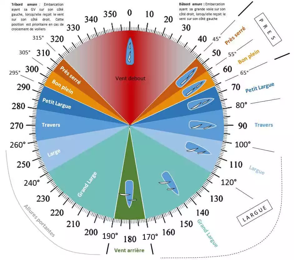 - l'axe en rotation est en blanc, et il tourne car il est soumis à une force extérieure: le vent dans la grand-voile.